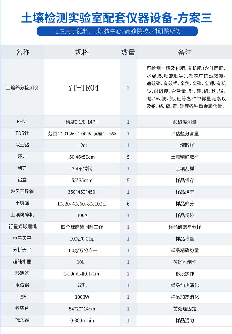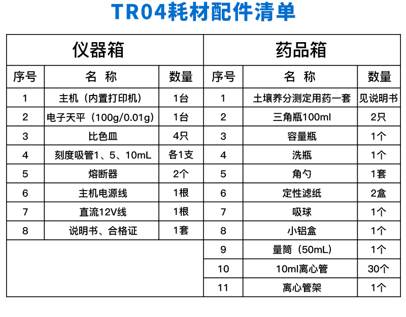 八、科研級土壤肥料養(yǎng)分檢測儀配置清單: