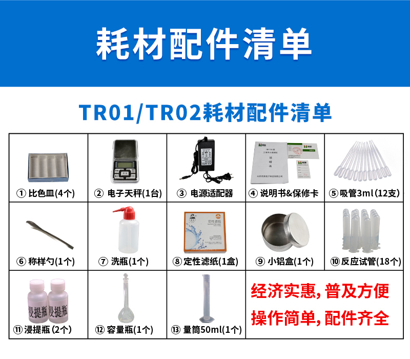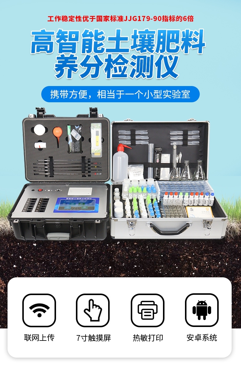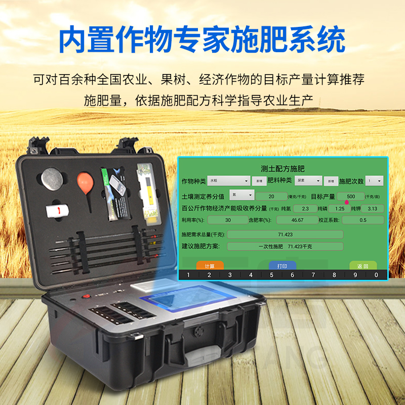 配套齊全:該儀器集藥、器、儀為一體,攜帶方便,相當(dāng)于一個小型移動實驗室,無需用戶自配附件,亦可靈活野外流動測試。適于農(nóng)業(yè)服務(wù)部門或農(nóng)資經(jīng)銷商、高教院校、科研院所、合作社、肥料廠商、大種植戶測土施肥和鑒別肥料真假及環(huán)保檢測應(yīng)用。