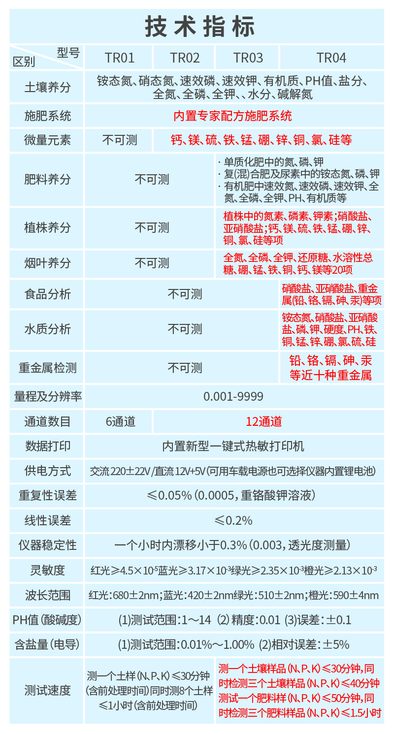 土壤氮磷鉀誤差≤1%,有機質(zhì)誤差≤2%,微量元素相對誤差≤5%;肥料單項誤差≤0.5%,氮磷鉀三項誤差≤1%;